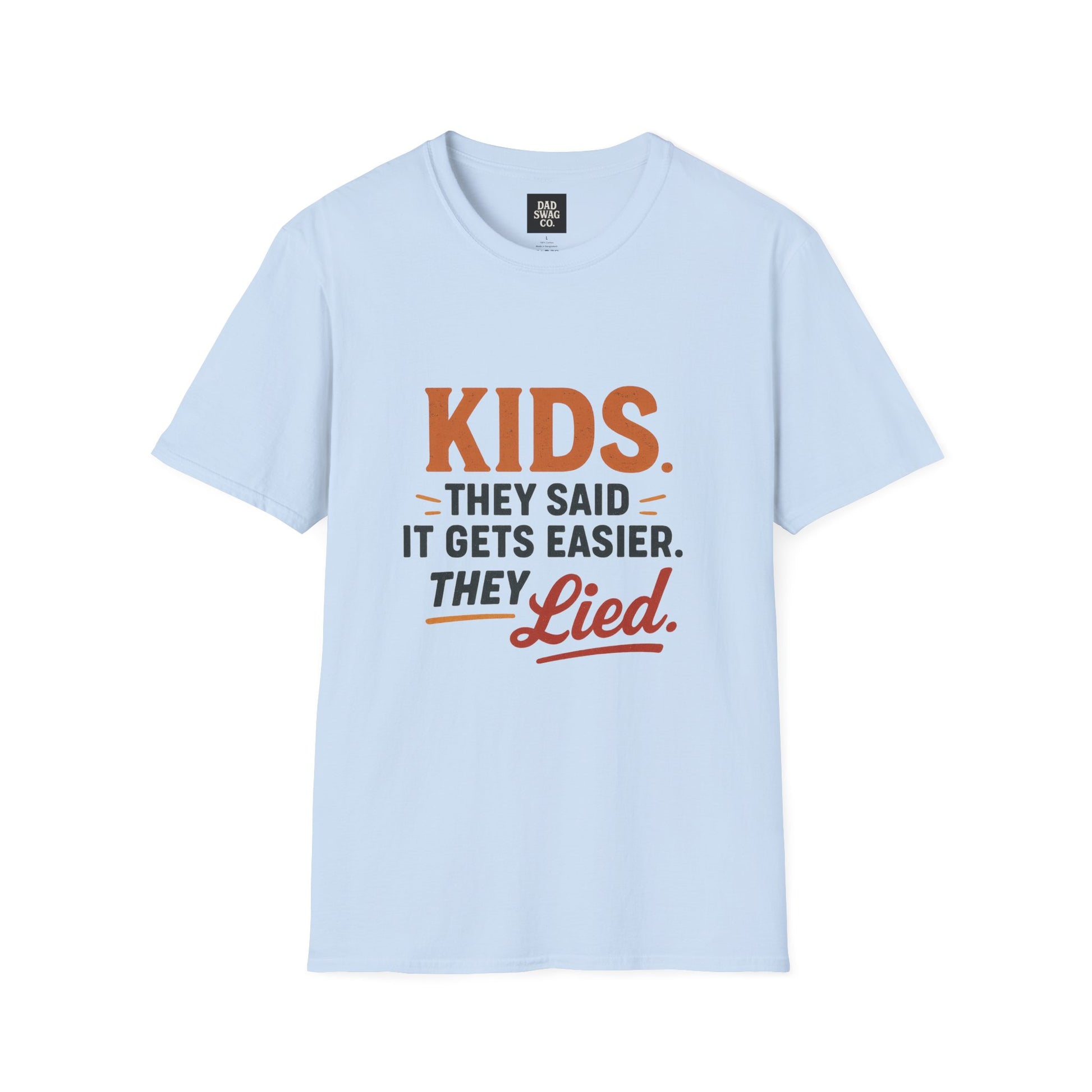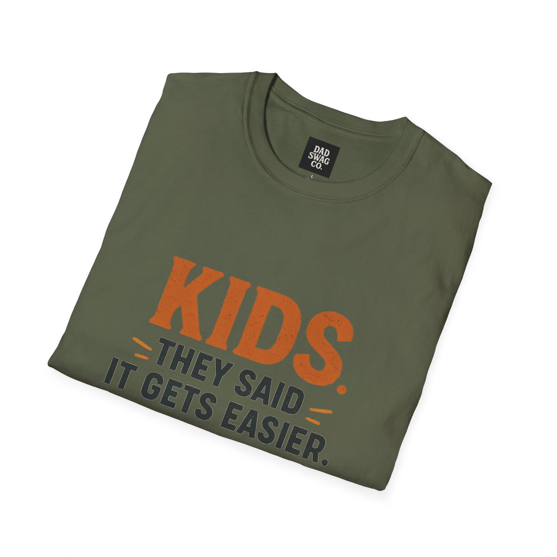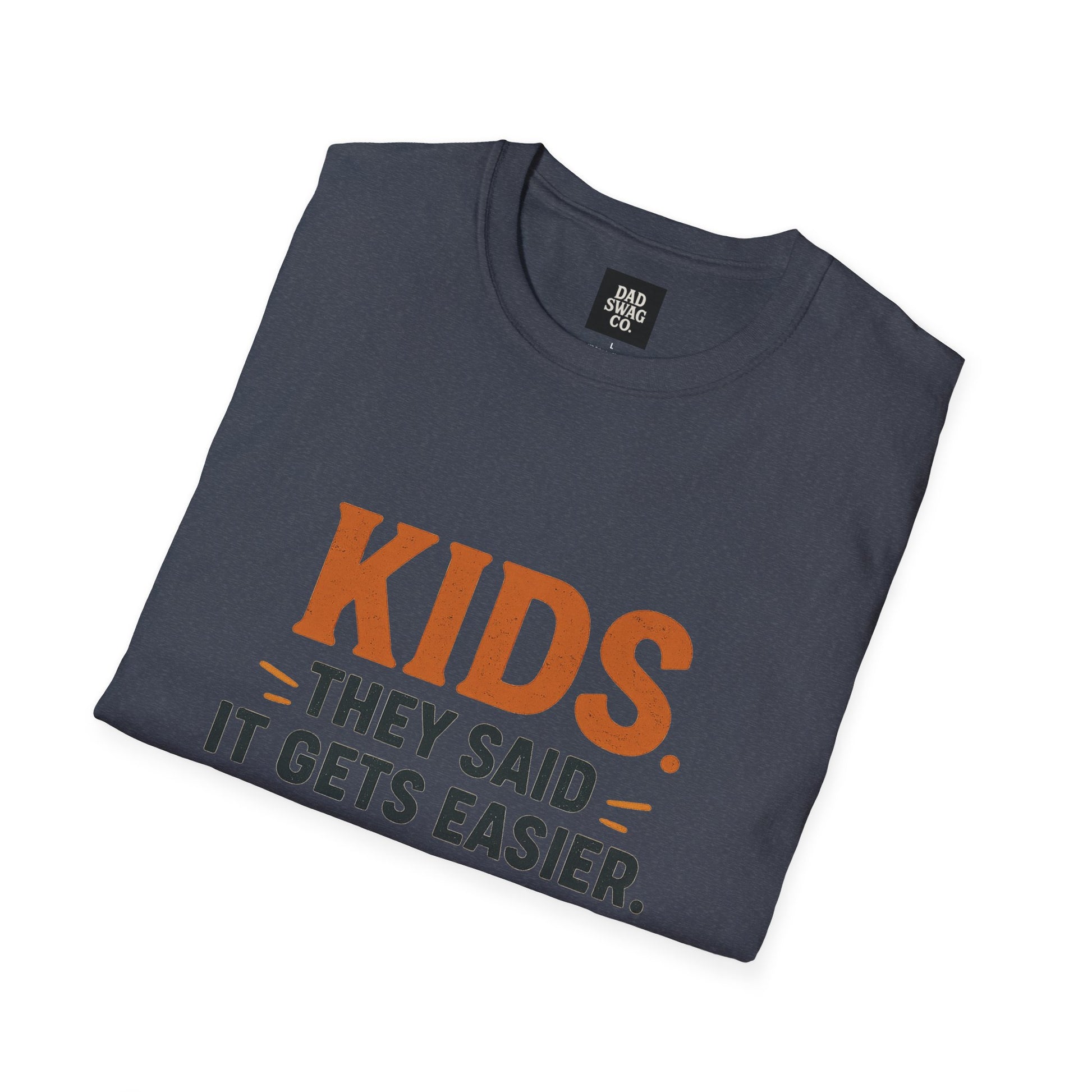 Remember when people told you it gets easier? Yeah, they lied. This shirt is the battle cry of every dad who’s made it through diapers only to find tantrums, and then outgrown tantrums only to find teenage eye-rolls. It’s not bitterness, it’s survival with a side of sarcasm. Designed in a bold retro style with a distressed finish, this tee feels like the truth: timeless, worn-in, and painfully accurate. Soft, breathable fabric makes it perfect for chasing chaos, folding endless laundry, or collapsing on the couch after bedtime (yours, not theirs). Whether you’re a new dad or a seasoned vet, this shirt isn’t just clothing, it’s therapy in cotton.